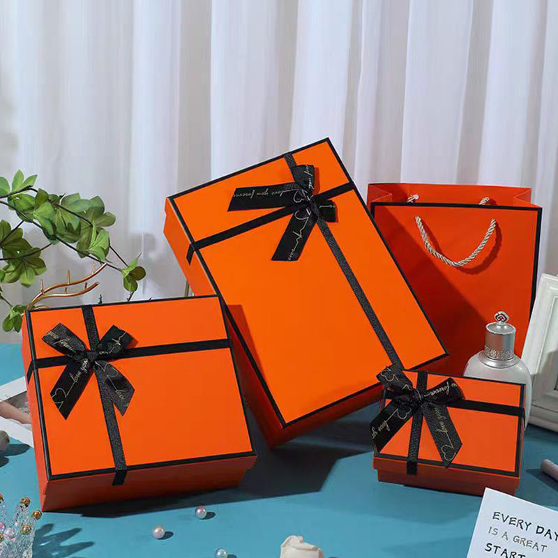 オレンジ色の蝶結びのプレゼントの箱の天地の蓋の軽い贅沢な風の創意包装の誕生日の贈り物の箱の口紅の贈り物のお土産のプレゼントのプレゼントのプレゼントのプレゼントの箱