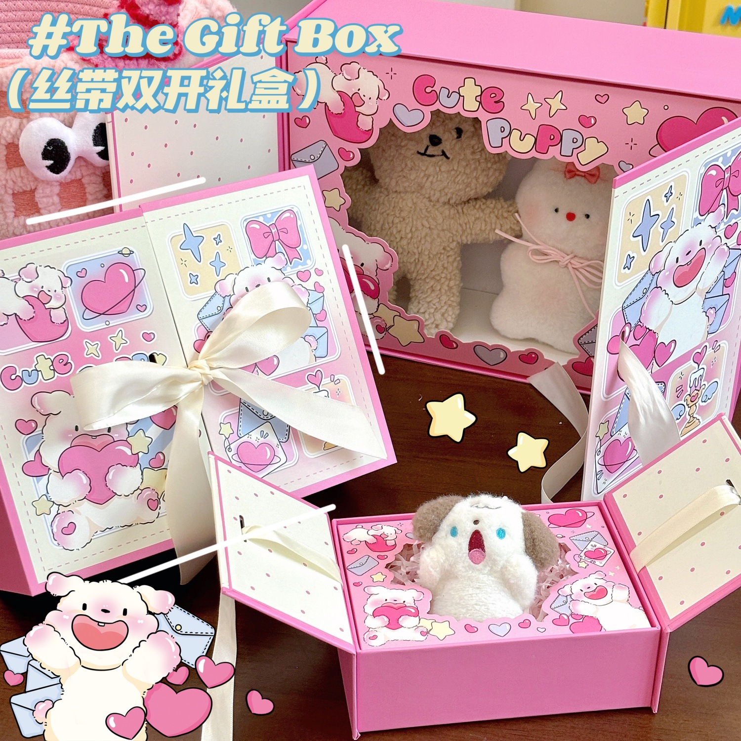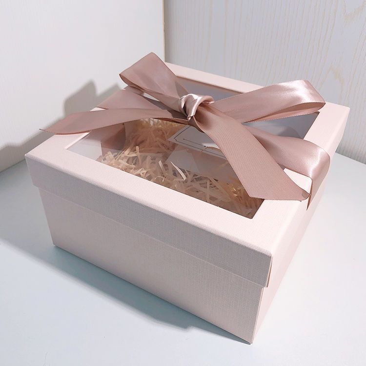 インスタ风新作ピンクリボンギフトボックス天地盖ギフトプレゼント手挂けギフトボックス可爱い包装精巧な空纸ボックス