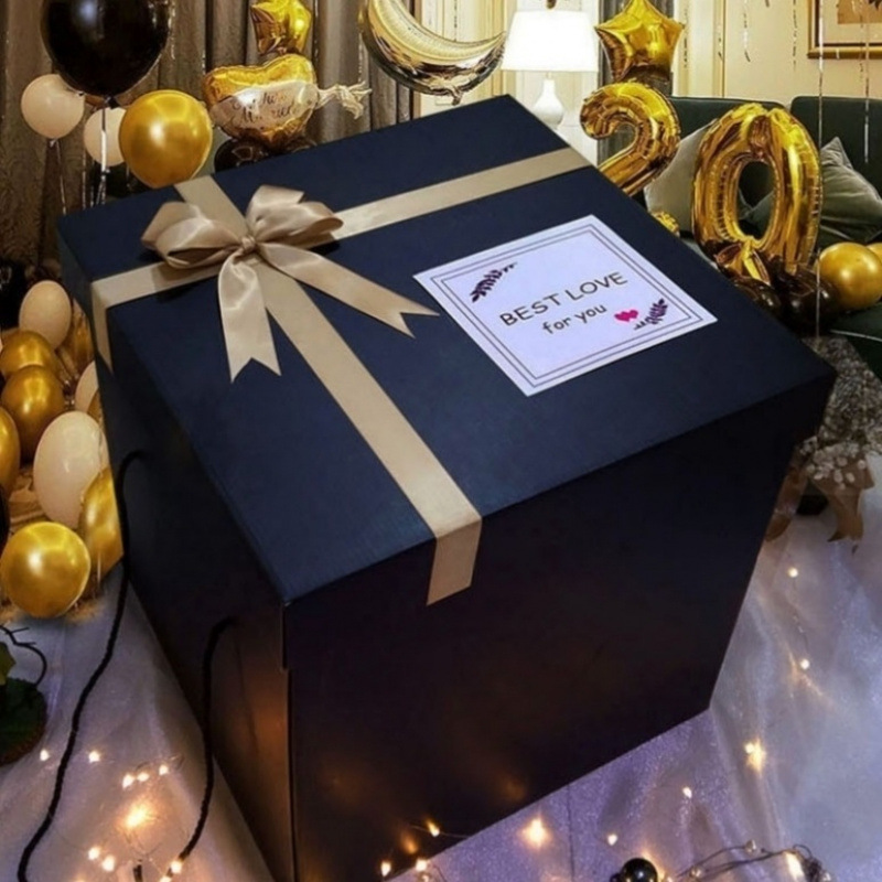 誕生日の箱の大きいサイズの空の箱は彼女の黒色の驚きの箱の大きい箱の特大の贈り物の包装箱を送ります。