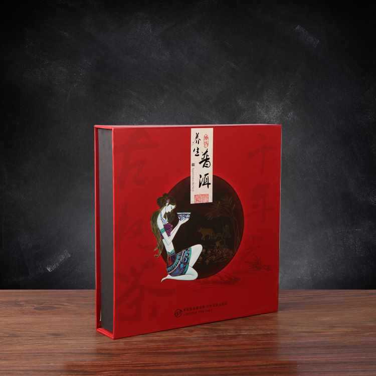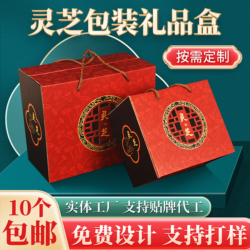 カスタム霊芝包装箱全体のギフトボックス霊芝片赤箔押し復古透かし手提げ箱現物