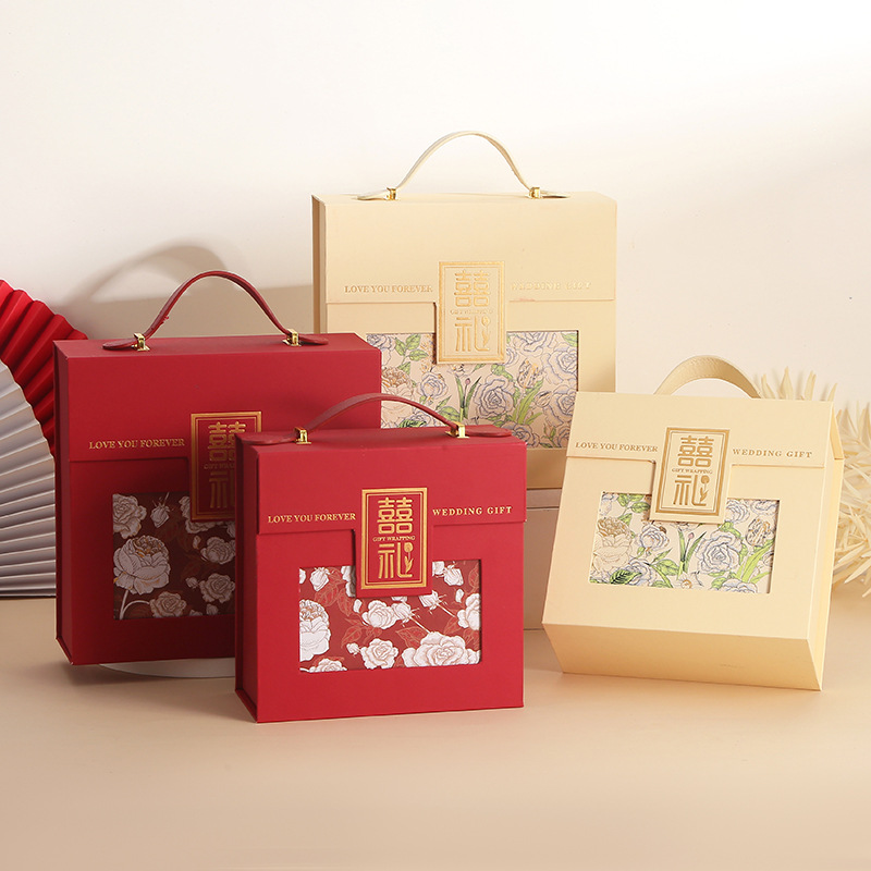 ポータブルウェディングキャンディボックス、中国風ウェディングギフトボックス、新築祝いギフトボックス、ギフト包装ボックス、お祝いフリップトップギフトボックス
