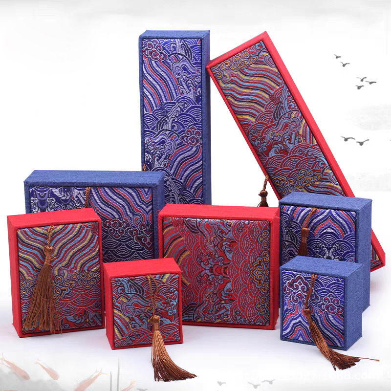 レトロな綿のブレスレットの仏珠の箱のペンダントのペンダントの箱の波の花のネックレスの玉器のギフトボックスの宝石の包装箱