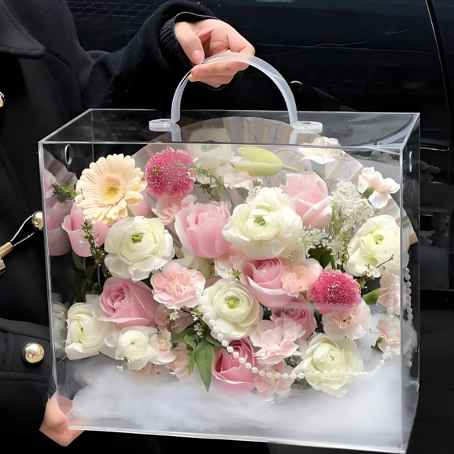 卸売りアクリル手提げ花箱生花包装ギフトボックス高級感花芸生け花空箱防水透明