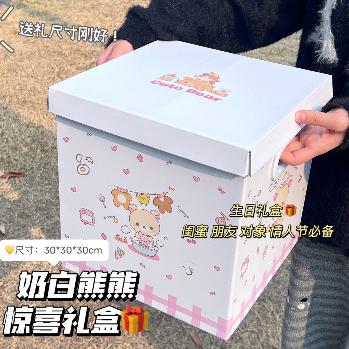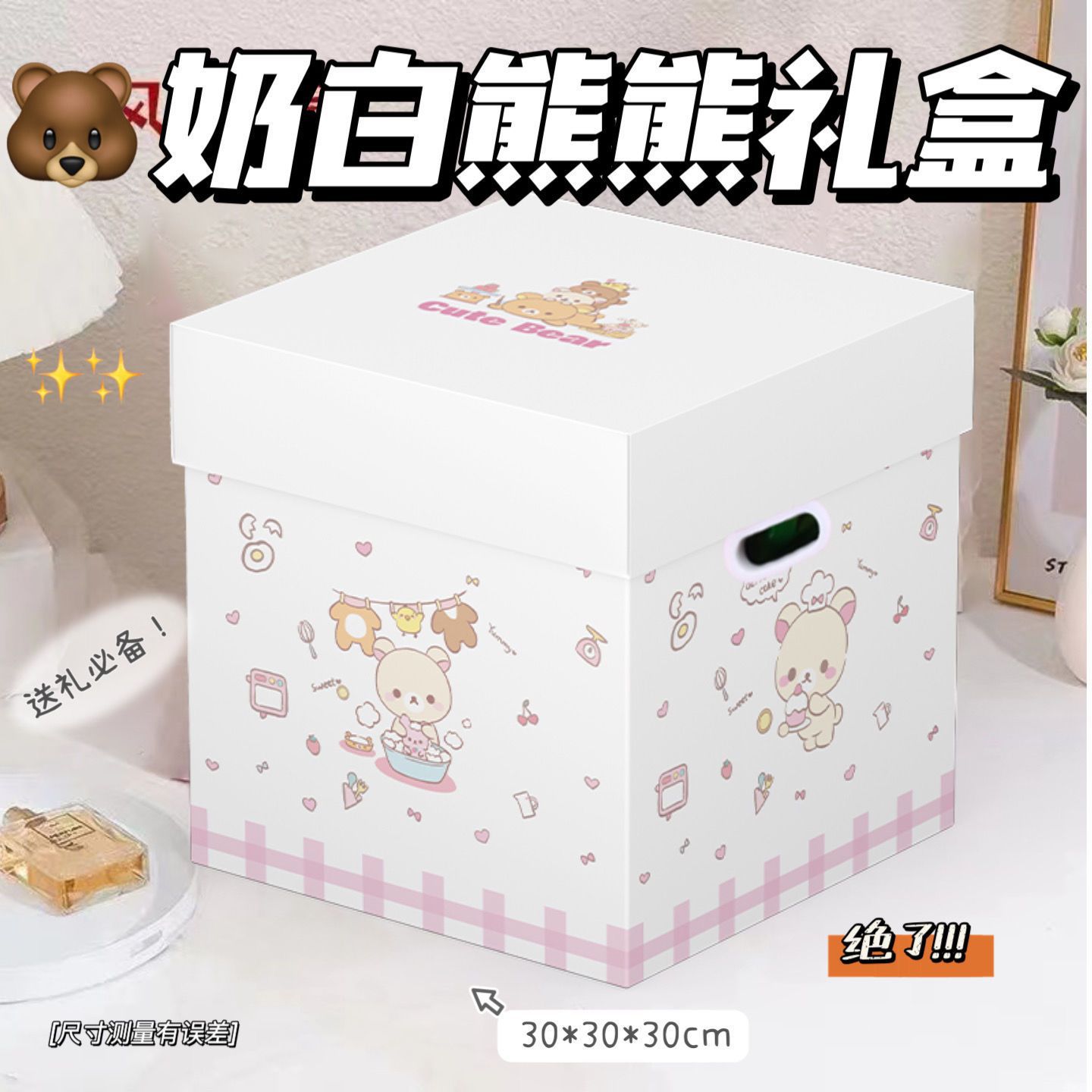 乳白熊熊ギフトボックス拉菲草大容量スナックボックス漫画の親友カップル収納ボックスかわいいギフトボックス