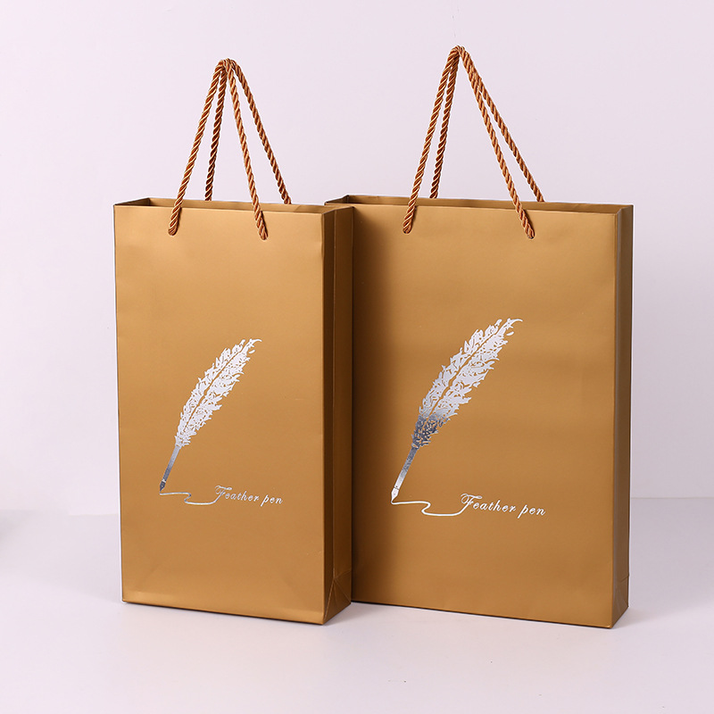 ヨーロッパのレトロな羽の筆に水筆をつけた高級な手提げギフトバッグ金色の青いギフトバッグ