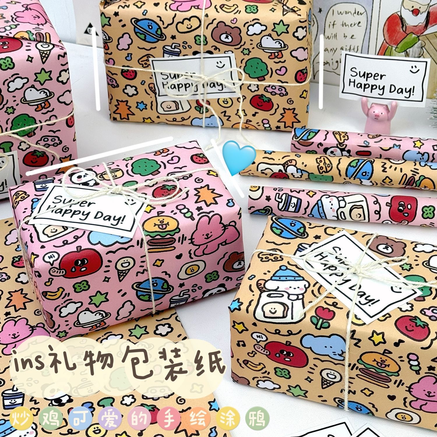 Insかわいい落書き包装紙クリスマス張漫画誕生日プレゼント包装紙ギフトボックス