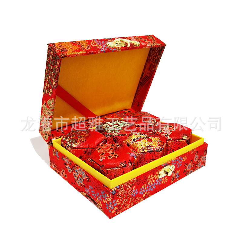 錦のリボンの箱の安宮の牛の黄色の丸の錦の箱の1粒の錠剤の箱の玉器のアクセサリーの贈り物の箱の6丸の中国式の贈り物の包装箱