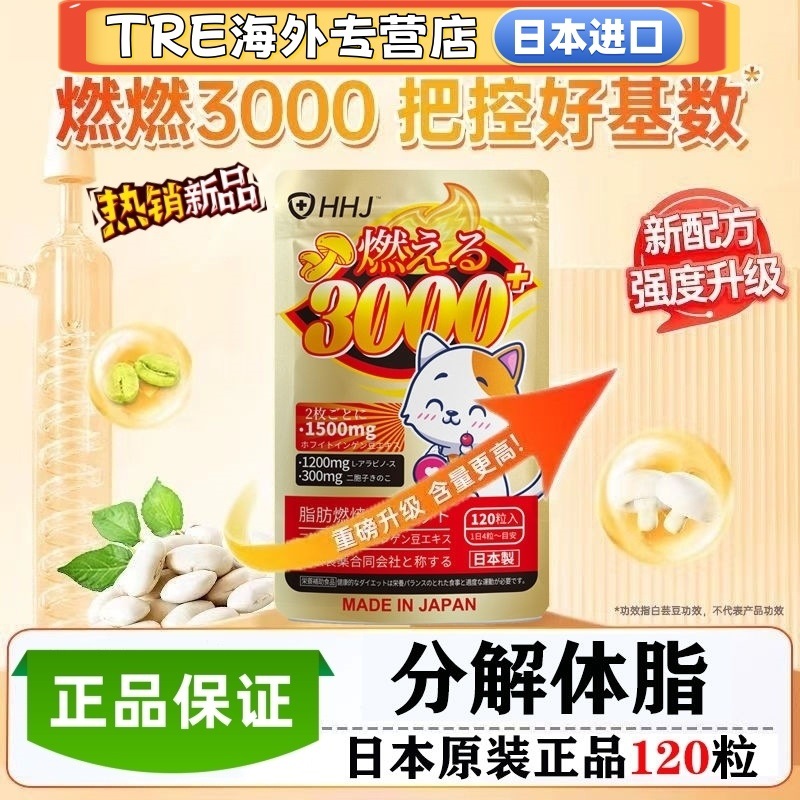 日本-HHJ-燃焼3000-白芸豆咀嚼片食物繊維-遮断剤大食炭水化物-非酵母