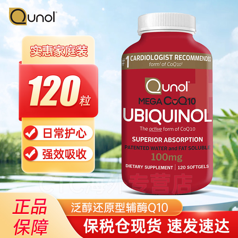 汎アルコール還元型コエンザイムQ10ソフトカプセル100mg120粒水溶性コエンザイムq10原装輸入