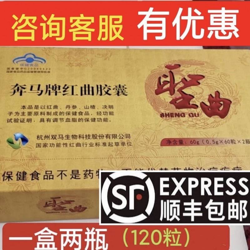 紅曲カプセル聖曲カプセル奔馬ブランド紅曲カプセル1箱2本120粒の新しい日付