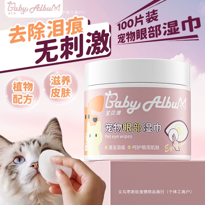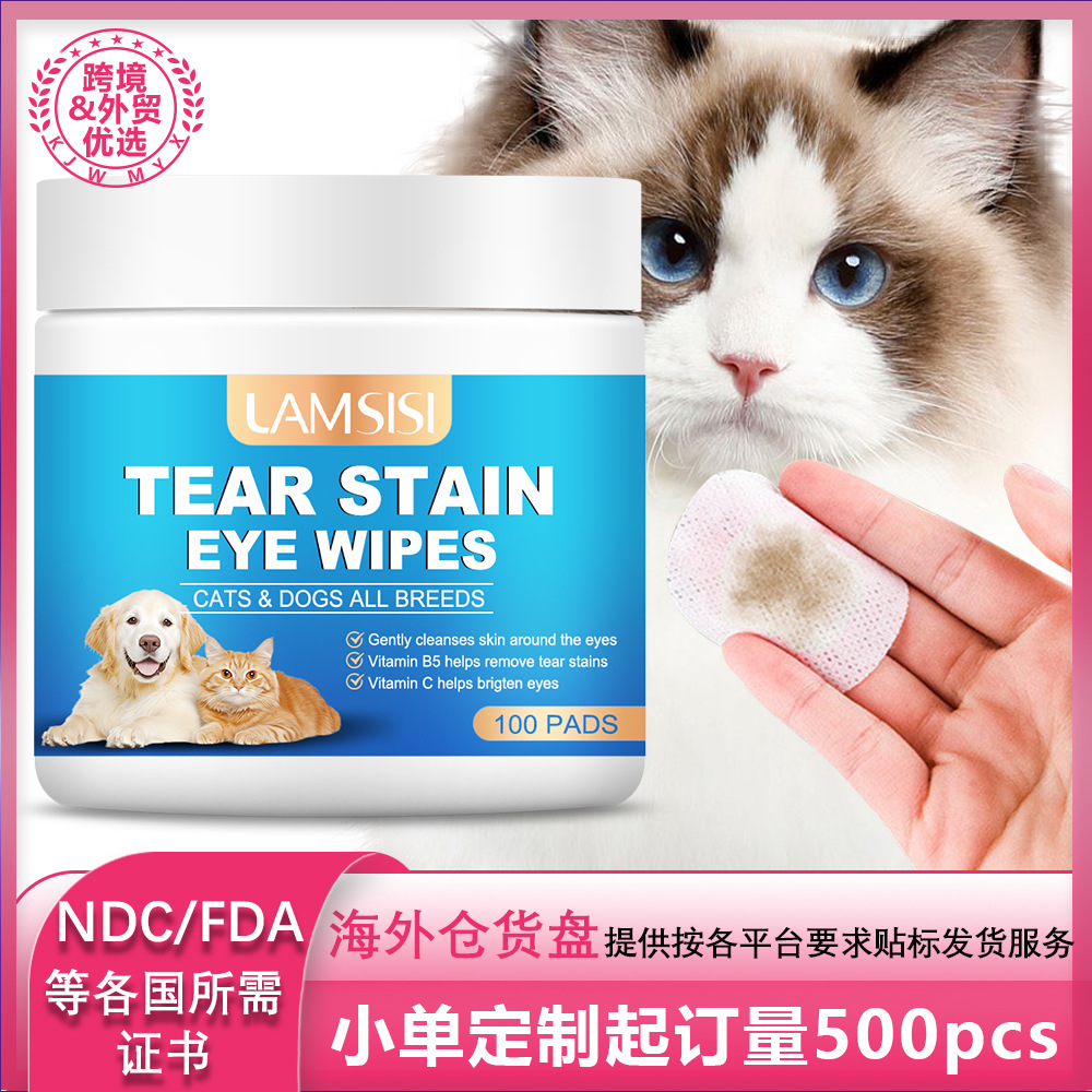 クロスボーダー100PADSポータブルペット清潔ウェットティッシュ猫犬涙跡神器目の清潔用