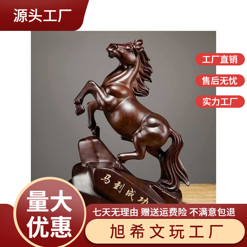 黒檀の木の彫刻の馬の置物の実木の馬は成功の工芸品の家の客間のテレビの棚の装飾品の開業の贈り物に着きます。