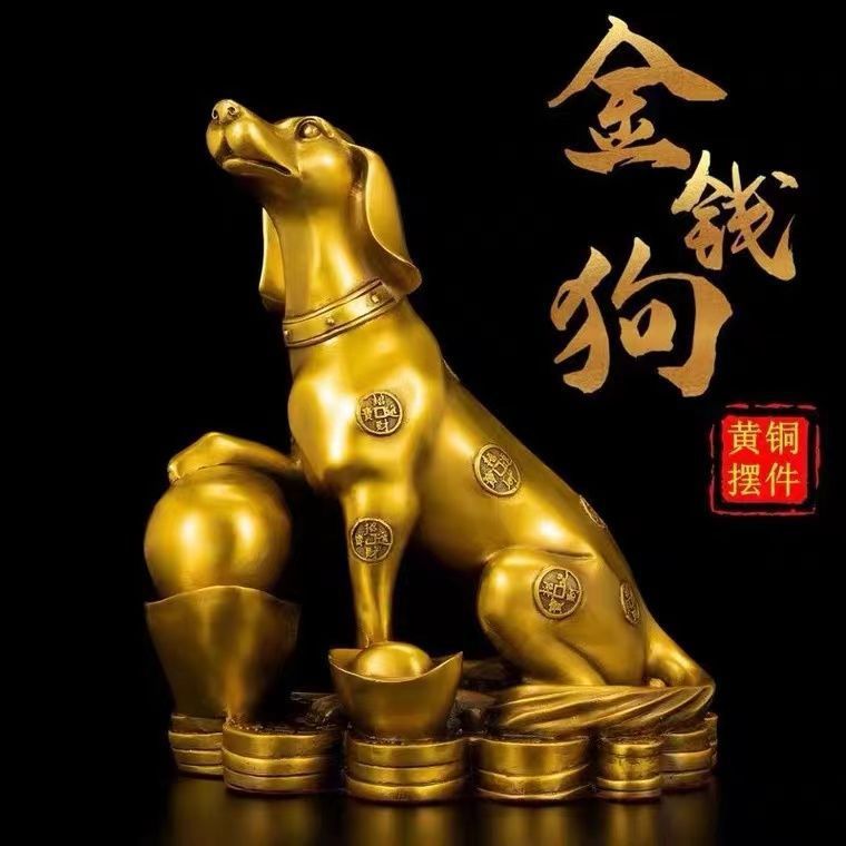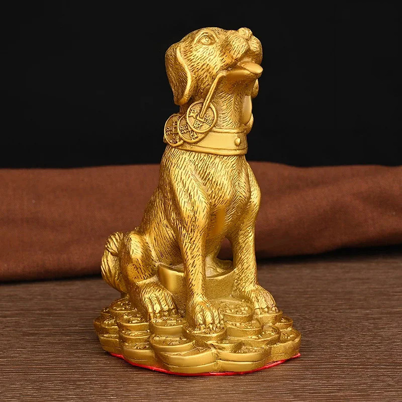 銅の犬の置物の金銭の元宝の犬の大きいサイズの生肖の犬の置物の事務室の室内の家庭用の角のデスクトップの装飾
