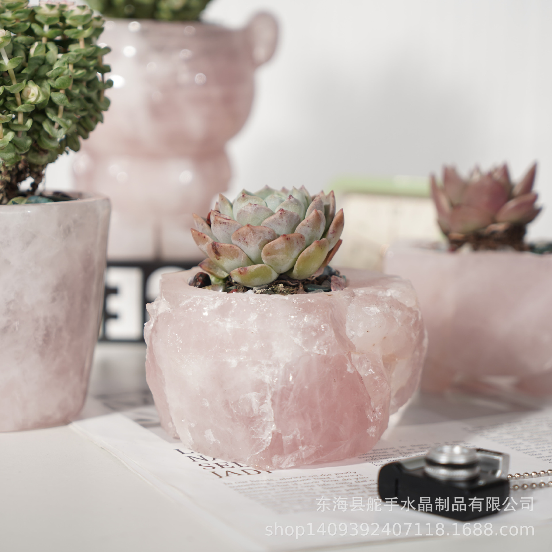 天然水晶粉晶夢幻紫晶原石彫刻盆栽植木鉢創意置物家庭贈答品移転専用