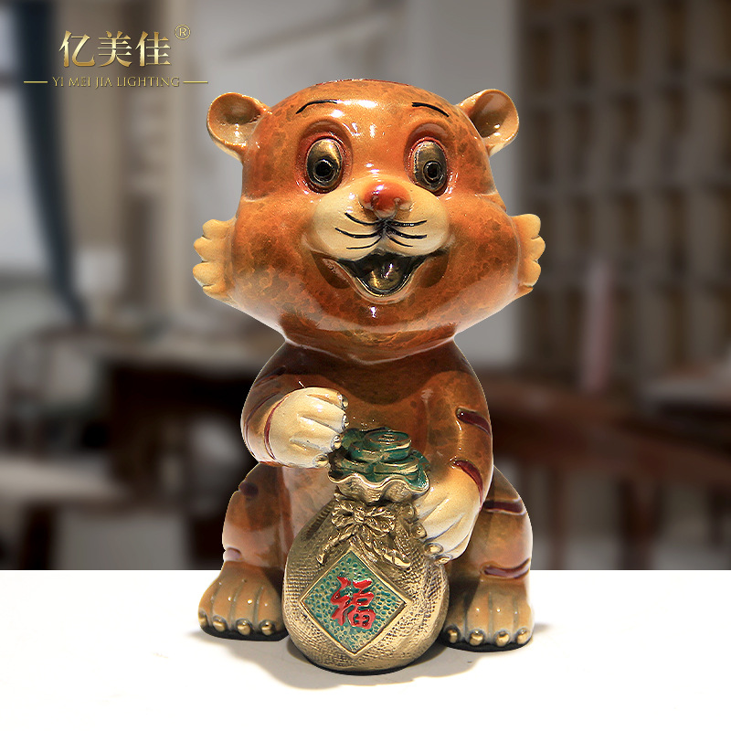 億美佳0149福袋虎肖虎置物中国式全銅贈答佳品置物銭袋元宝客間家