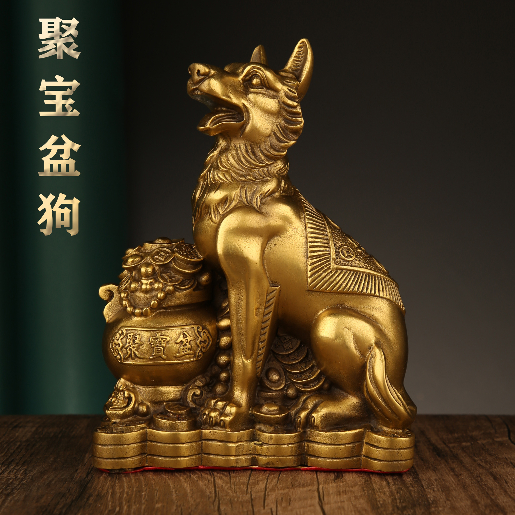 ホームオフィス装飾肖犬置物全銅銭袋犬聚宝盆犬聚宝盆狼犬銅置物