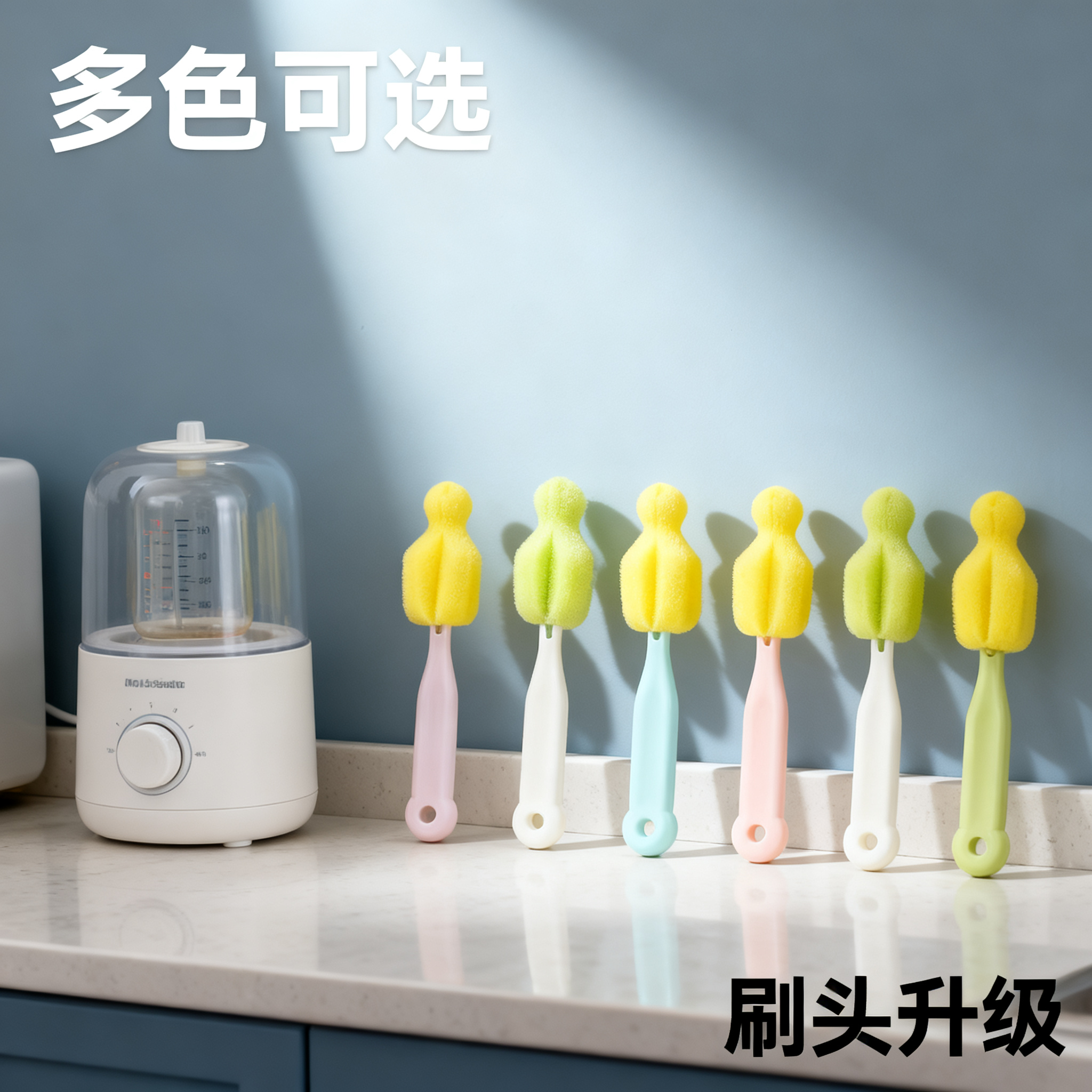 赤ちゃん哺乳瓶ブラシスポンジ乳首ブラシ360度回転清潔ブラシカップブラシ2セット卸売り2合1袋