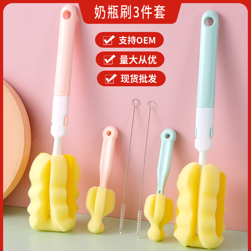 クロスボーダースポンジボトルブラシ、ニップルブラシ、ストローブラシ、取り外し可能なカップブラシ、ボトルブラシ、3点セット、魔法瓶カップブラシ
