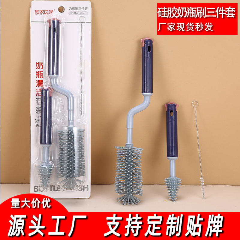 ベビーシリコンボトルブラシ、ストローカップブラシ、哺乳瓶乳首洗浄ブラシの3点セットの国境を越えた供給
