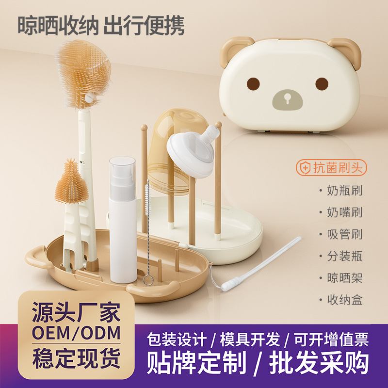 クロスボーダー専用シリコン哺乳瓶ブラシ携帯哺乳瓶ブラシセットベビー専用哺乳瓶収納ケース哺乳瓶洗浄
