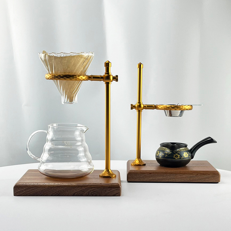 コーヒー無垢材アルミ合金/銅ハンドパンチラックドリップティーラックカップフィルター調整可能な工場直接卸売
