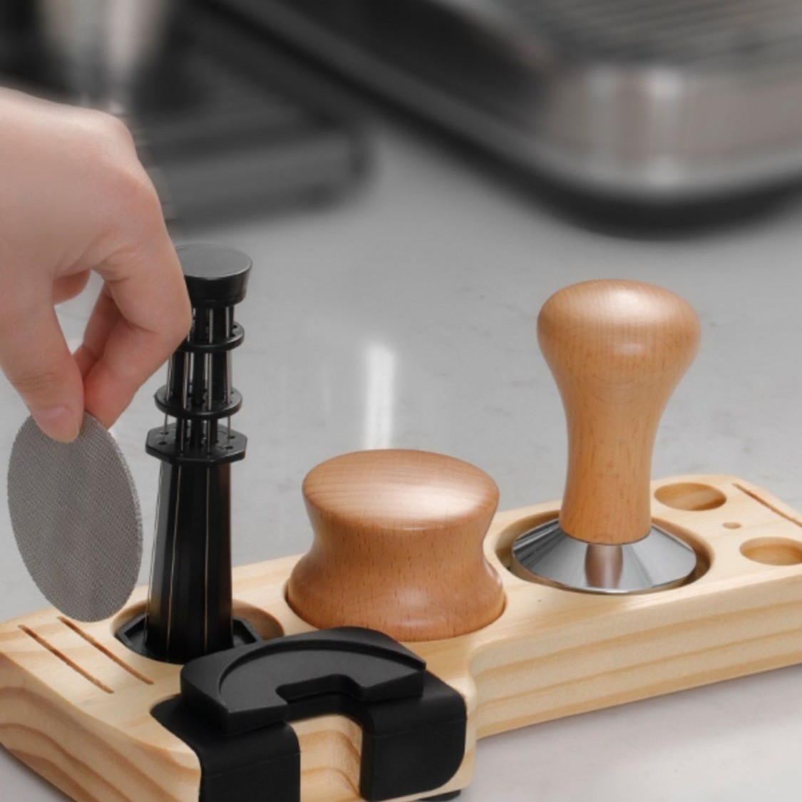 汎用コーヒー圧粉座コーヒーマシンハンドルセット器具収納実木支持フレーム圧粉51mm/58mm