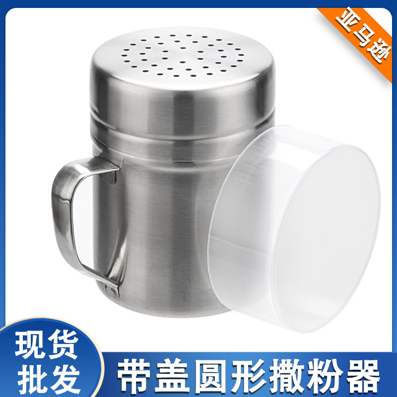 国境を越えて人気のあるステンレスの粉を撒く缶の調味料の瓶はハンドルのコーヒーを持って粉を撒く器の抹茶のカカオの粉を撒く缶の筒を撒きます。