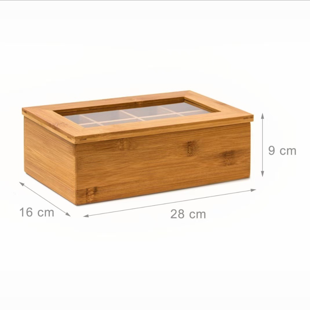 竹の木の8格のお茶の箱のデスクトップはふたをひっくり返して格の透明なミルクのお茶の袋のコーヒーの収納箱のデスクトップの雑物の整理箱を分けます。