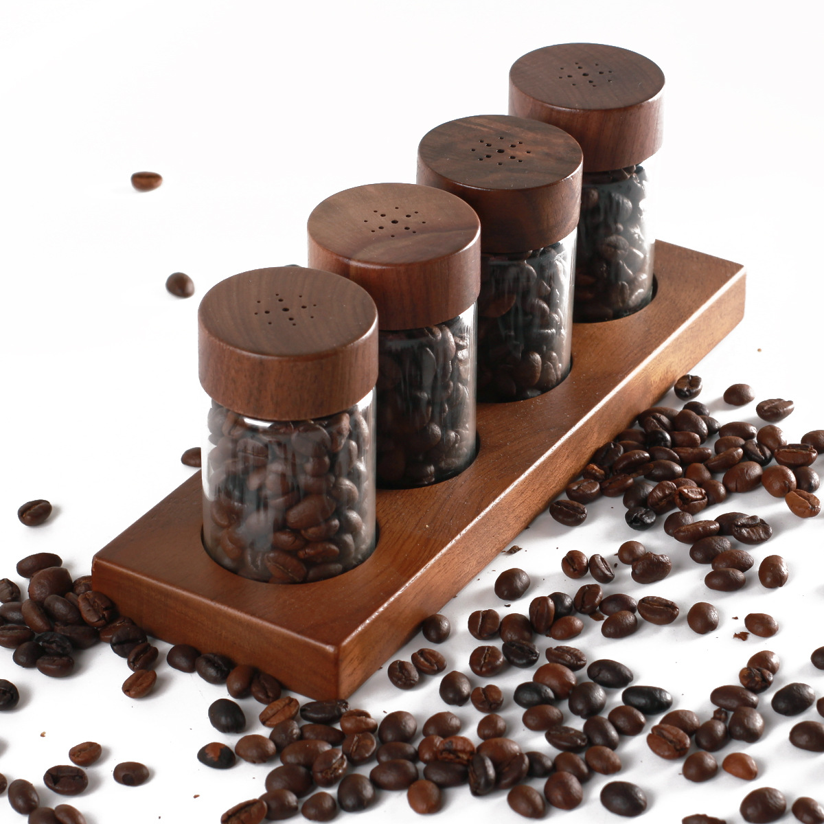 Mg 4缶セットベースコーヒー豆試験管展示棚キッチンシール缶豆貯蔵陳列棚ガラス瓶