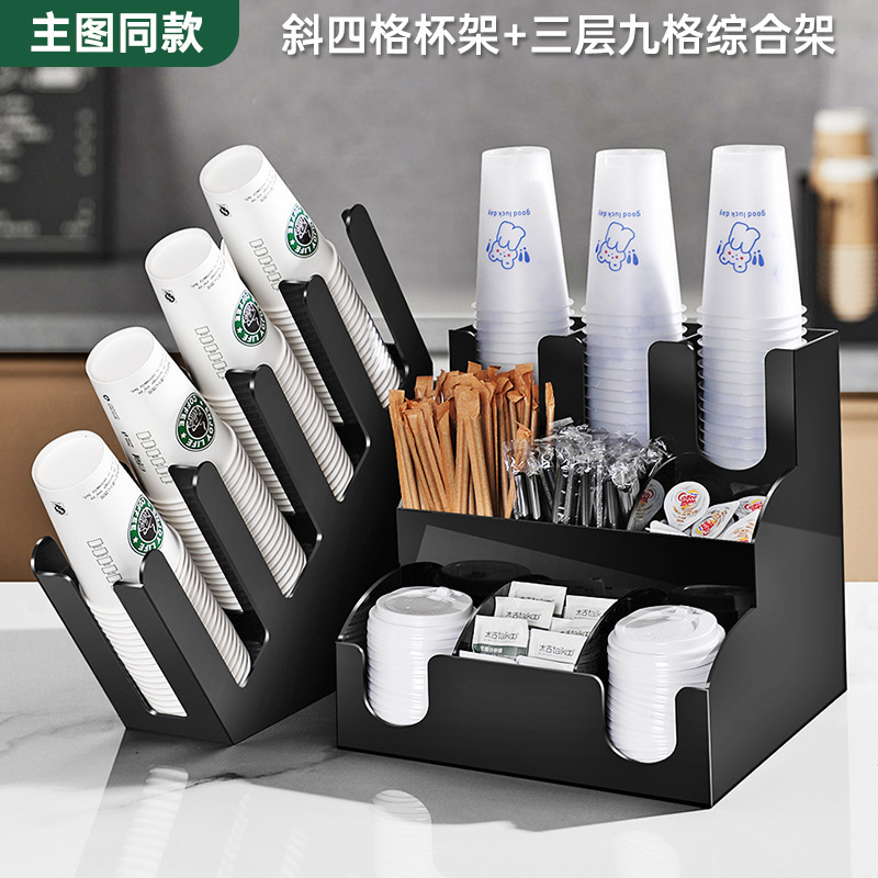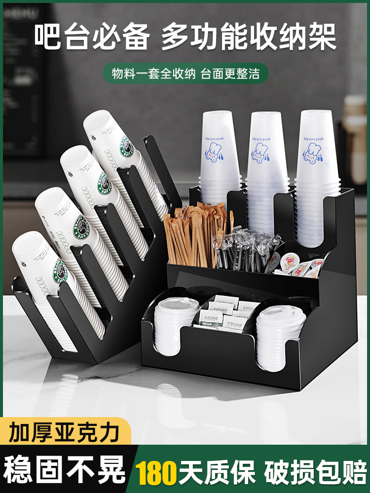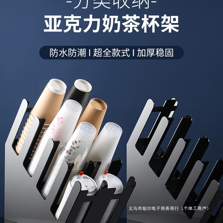 ミルクティーショップカップホルダーアクリルカップホルダーコーヒーカップディスプレイ配置ラック商業ストロー収納ボックス付属器具