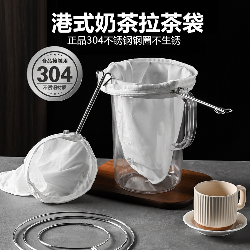 304ステンレス香港式ミルクティー濾過袋スチールリング茶袋ストッキング茶茶葉濾過布綿袋
