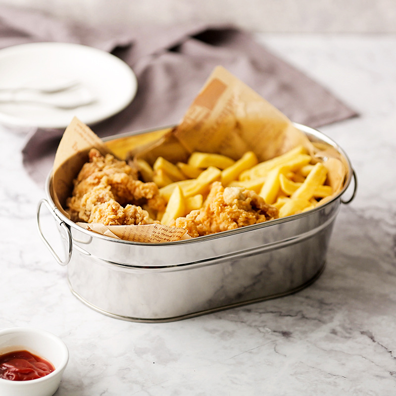 304ステンレススナックバスケットinsネット赤アメリカ料理店楕円海鮮型フライドチキン皿ポテト棚スナックバスケット