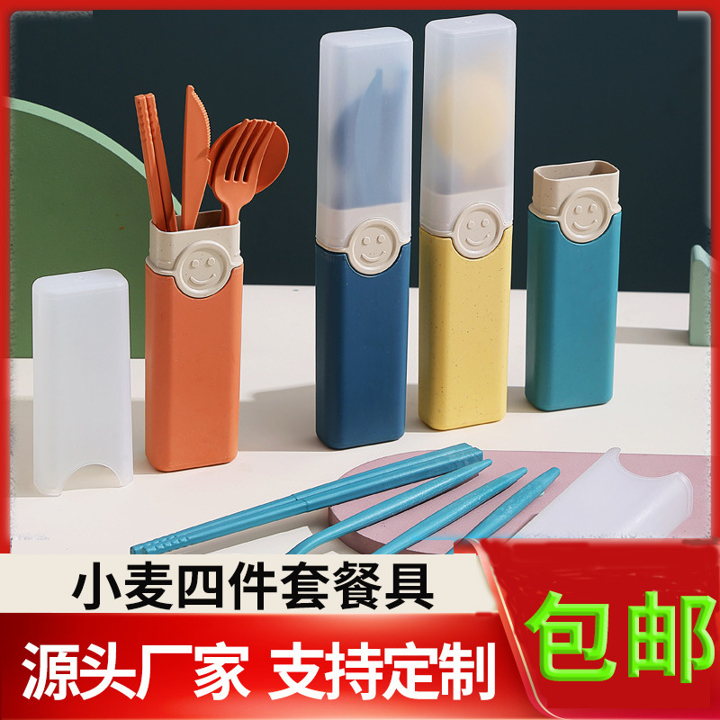 ポルトガル風小麦わらナイフフォークスプーン箸4点セット学生用携帯食器セット防塵収納ケース