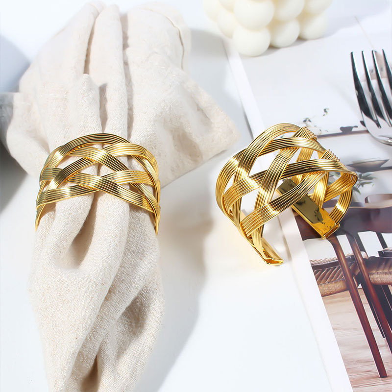シンプルなオープン織り金属ナプキンリングホテルレストランテーブル装飾ナプキンバックル