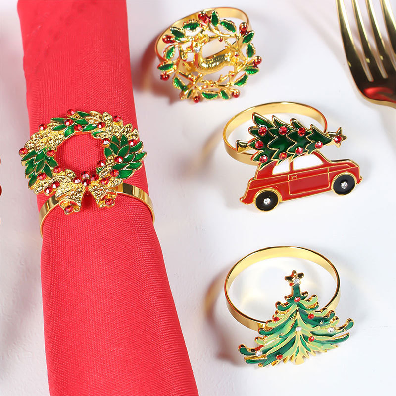 画油カラー木の葉のナプキンリングを提供します。クリスマスのテーブルにクリスマスの葉のナプキンリングを飾ります。