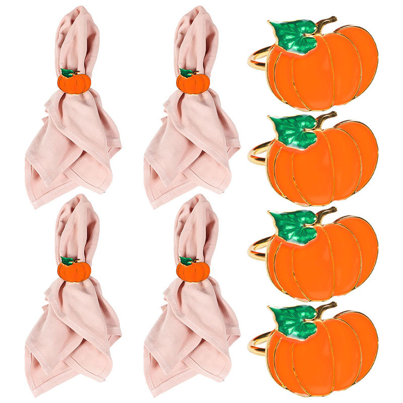 感謝祭ハロウィーン緑の葉オレンジ色のカボチャナプキンリングナプキンリング鬼節パーティーテーブル装飾ボタン