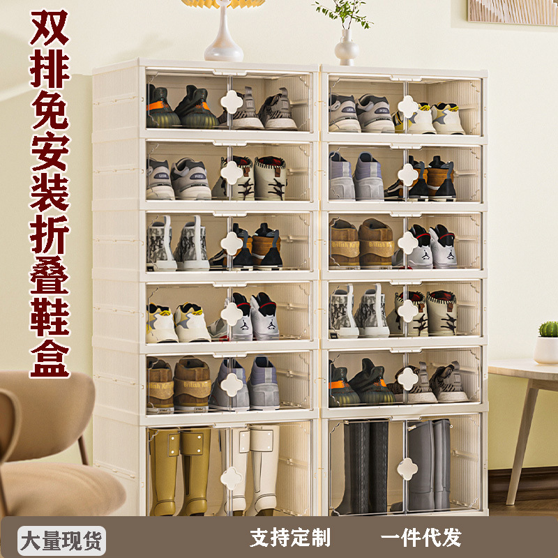 高級無料靴ケース家庭用折り畳み靴箱収納ケース透明靴棚二列大容量靴収納ケース
