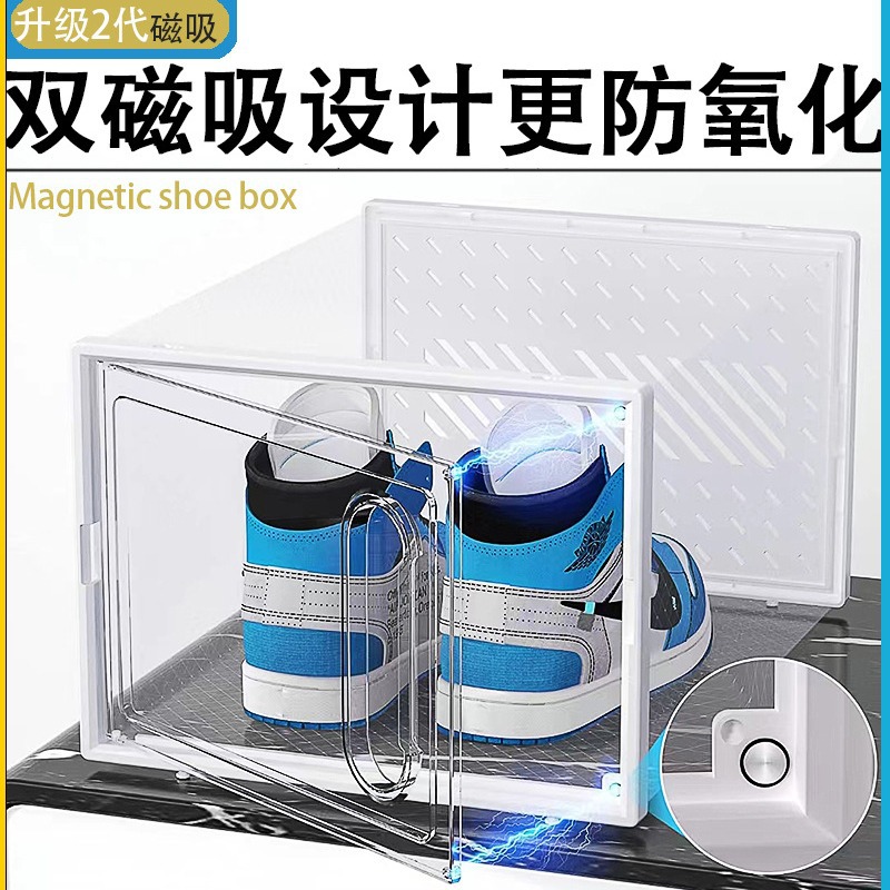 国境を越えた卸売 PP シューズボックス AJ スニーカー透明収納ボックス磁気サイドオープンディスプレイプラスチック寮アーティファクト靴キャビネット