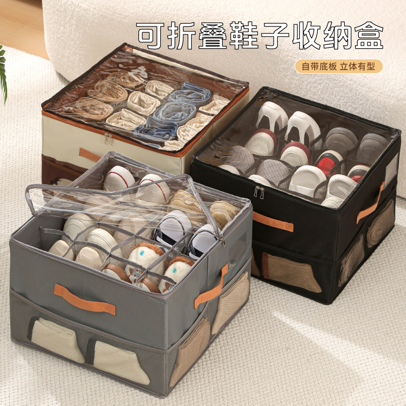 靴箱 靴収納ボックス 折りたたみ式コンパートメント 見える防塵防湿 ベッド下寮 家庭用大容量収納ボックス
