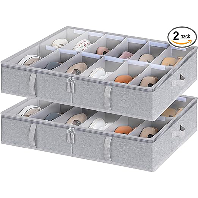 ベッド底靴収納ボックス透明靴ボックス折り畳み可能織物収納ボックス収納防塵