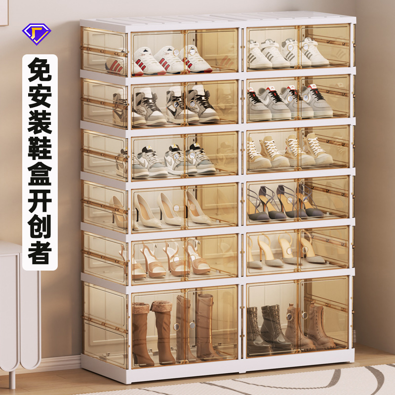 サイドオープンマグネット吸い込みドア透明シューズボックス防塵靴収納ボックス多層大容量折りたたみ式コンビネーションシューズキャビネットシューズラック