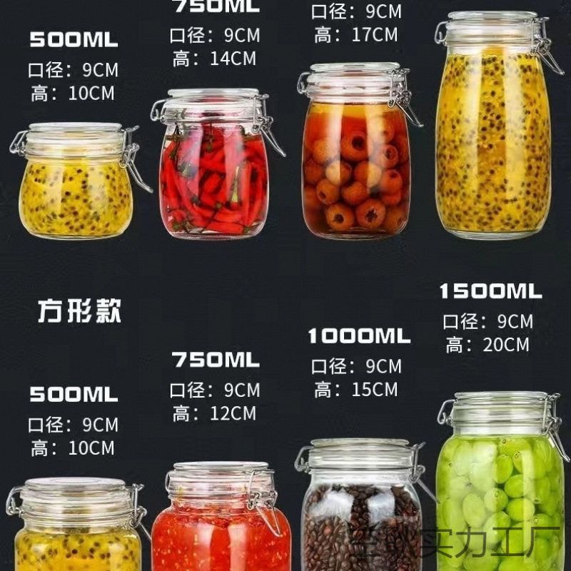 ガラス瓶密封瓶蓋付き食品瓶透明缶家庭用漬け物レモンパッションフルーツ蜂蜜保存瓶