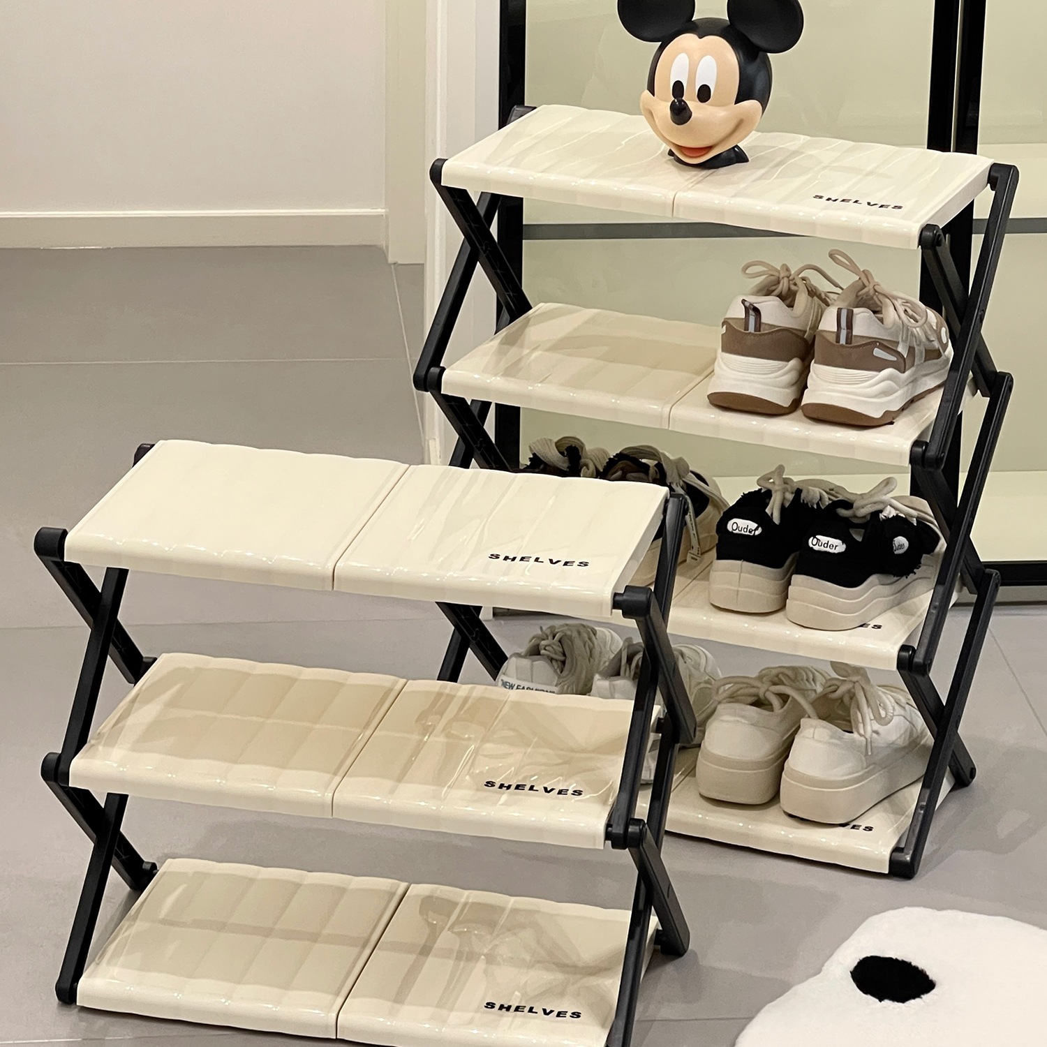 靴を1倍増】シューズキャビネット 省スペース 靴収納 家庭用 二層靴ホルダー 折りたたみ靴ラック