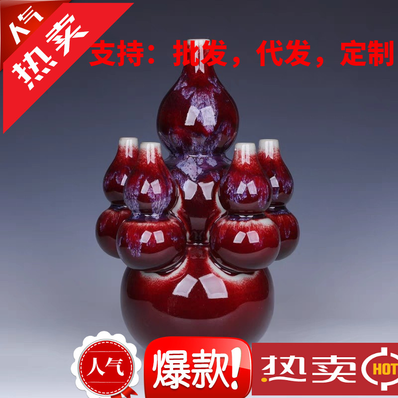 景徳鎮陶磁器の赤い五福瓢箪鈞磁器の花瓶の置物の開口部の客間の家庭工芸品の大きいサイズ