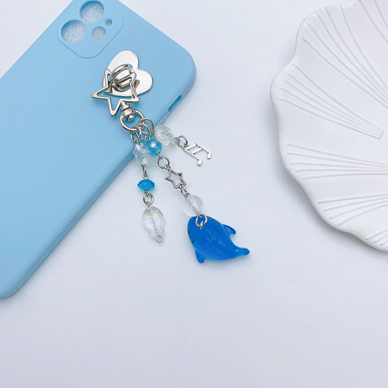 クリエイティブ漫画樹脂サメ人形ビーズキーホルダーかわいい少女心レーザー貝殻小魚かばんアクセサリー