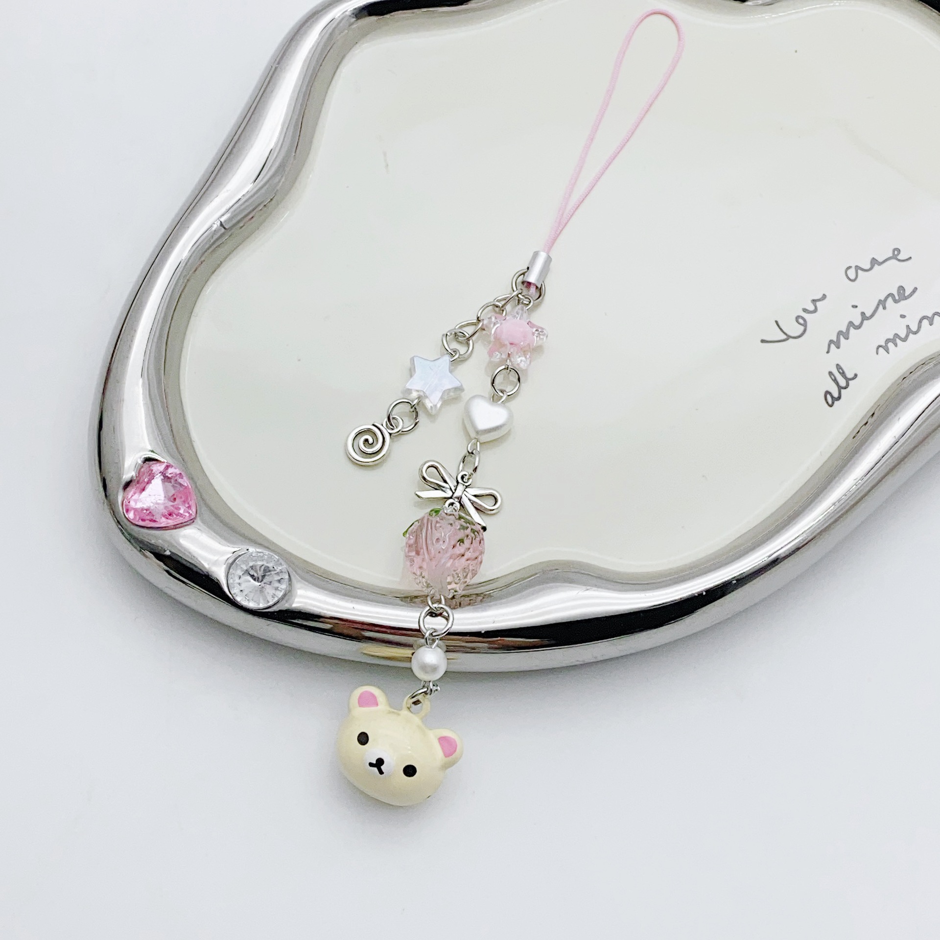 国境を越えた携帯ケースに少女を飾るかわいいベアーいちごペンダント愛の手作りビーズ桜のキーホルダー