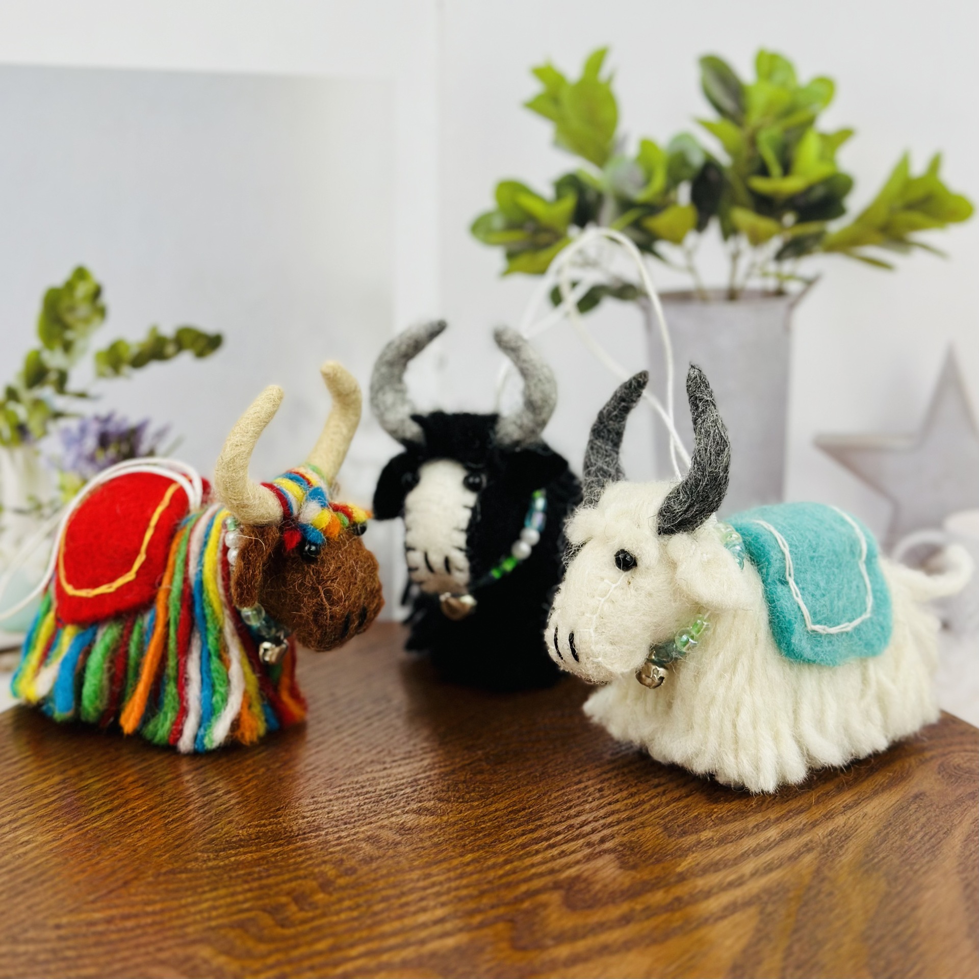 手作りの羊のフェルトの立体のヤクの人形はかわいいです。