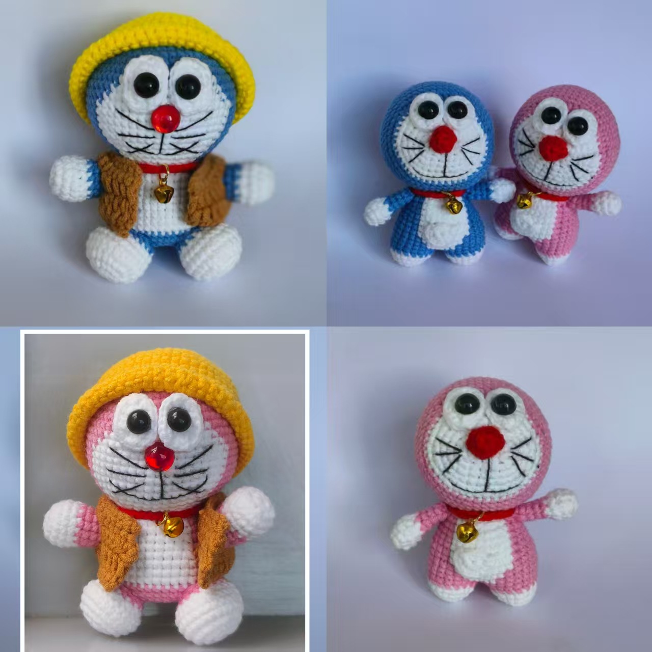 完成した手作りかぎ針編みウール人形猫バッグペンダントキーホルダーペンダント人形