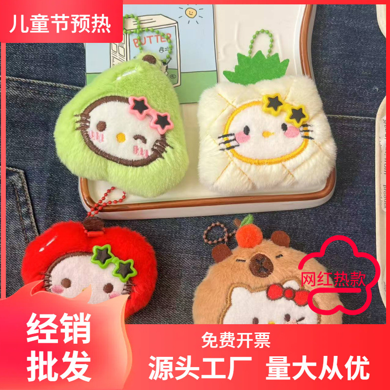 キュッキュッと鳴るぬいぐるみ、卸売りのぬいぐるみペンダント、メガネ、リンゴ、梨、パイナップル、キーホルダー、バッグアクセサリー、甘いペンダント