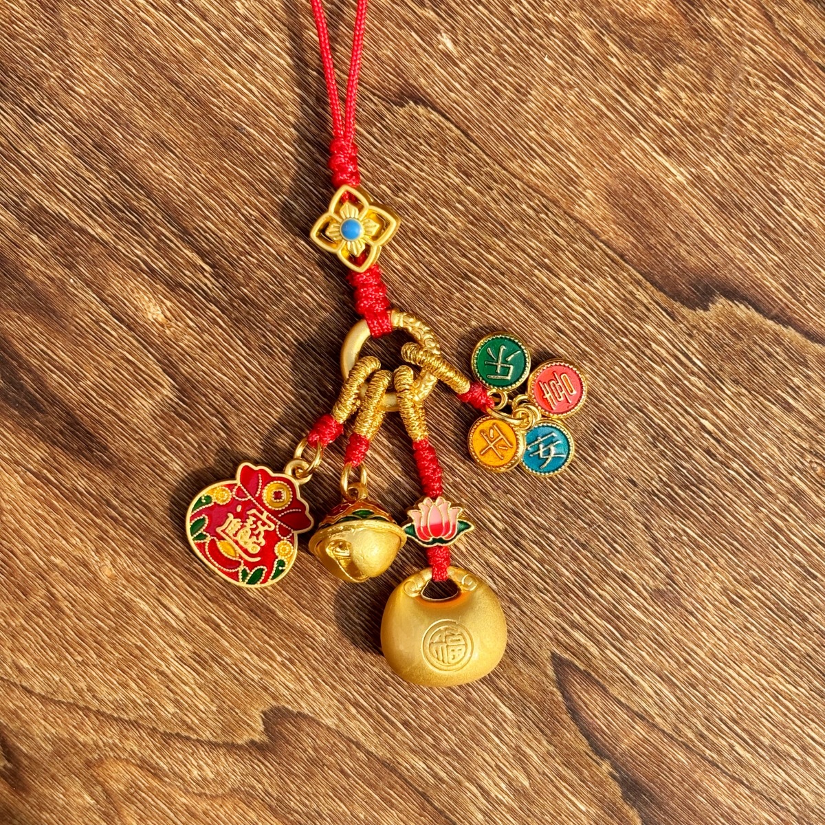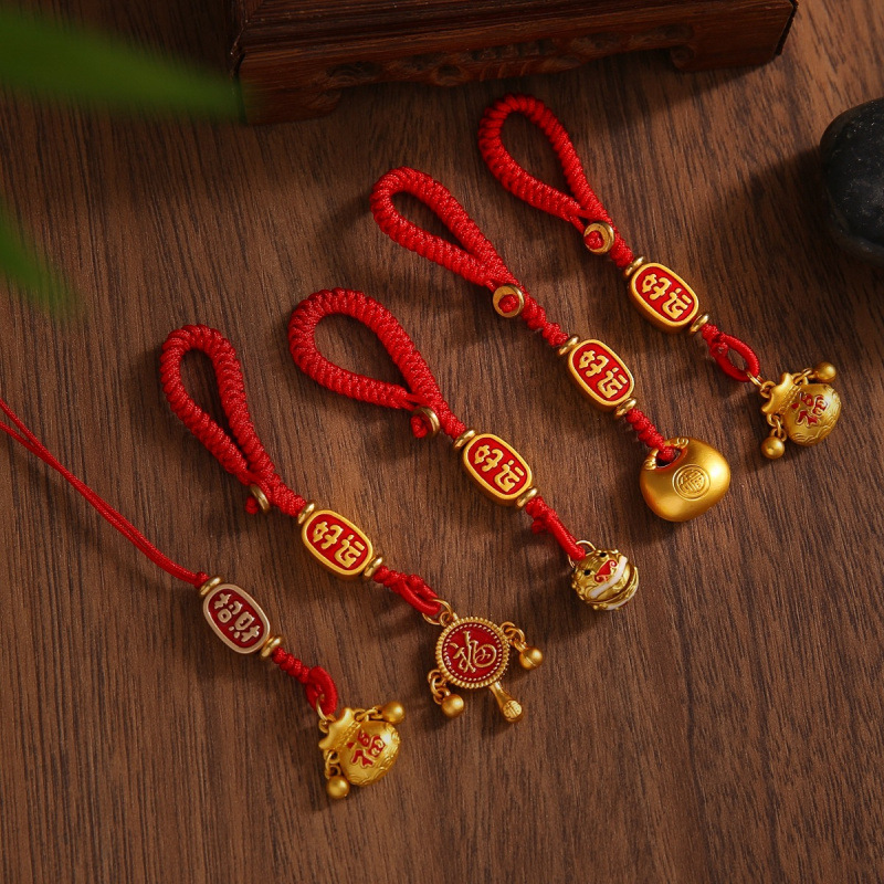 古法の金の幸運は福の袋の赤い縄のペンダントをつないでひもの車の鍵のキーホルダーの携帯電話のペンダントの装飾の包みを掛けます